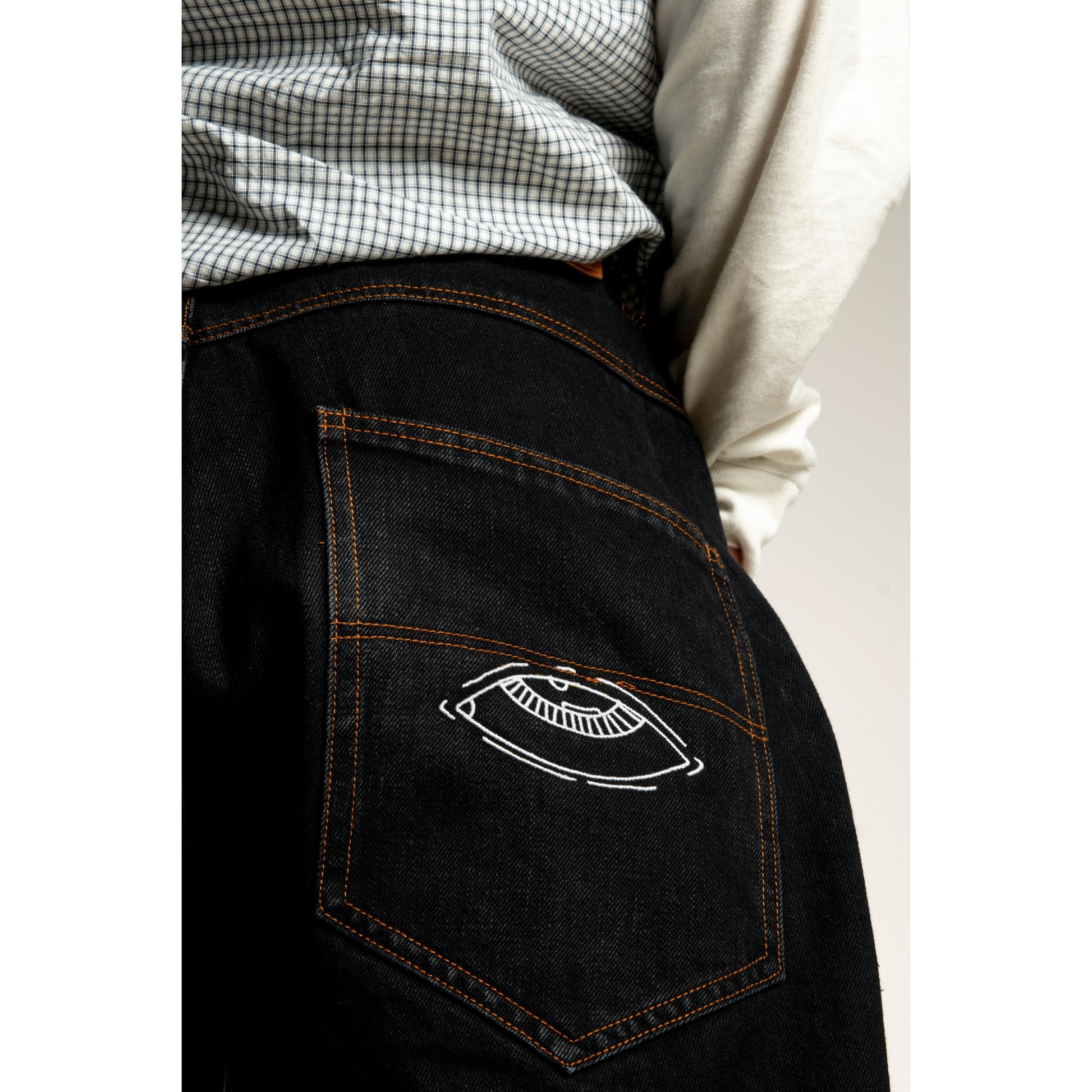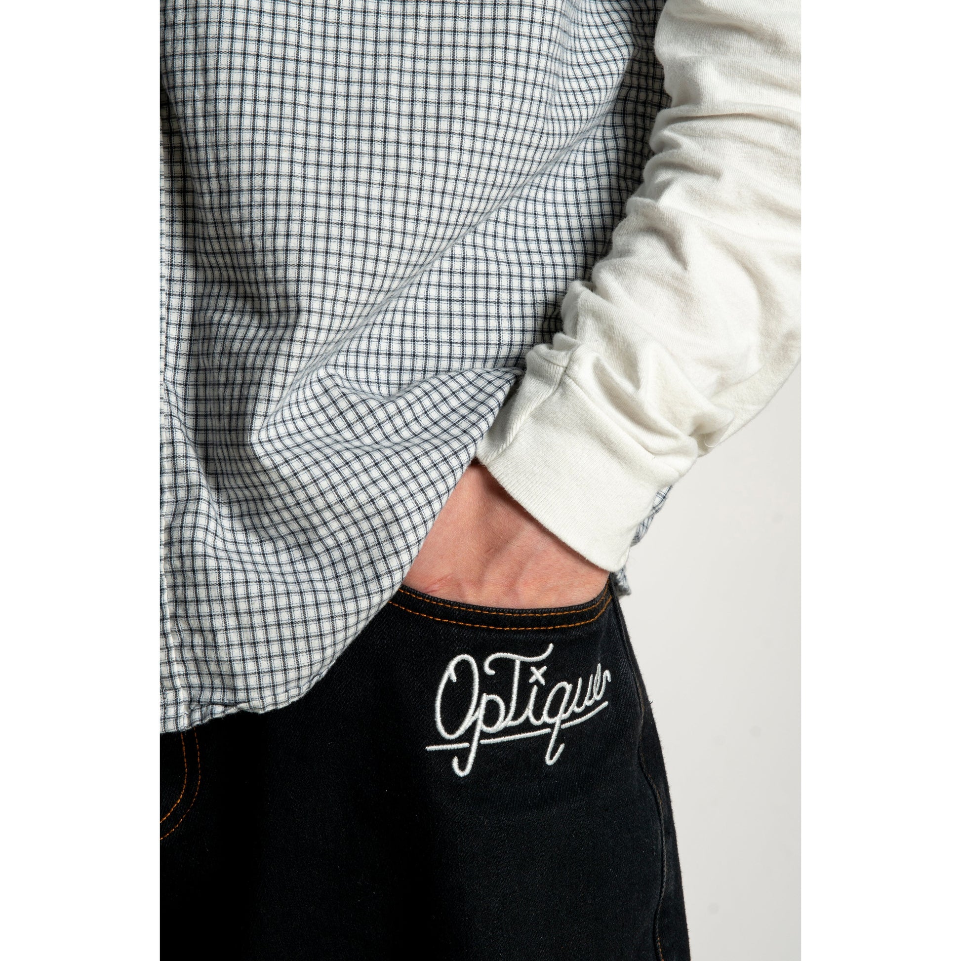 Make a statement with the Optique Black Denim Jeans — a raw, functional essential built with skater attitude. Crafted from unwashed black denim, these jeans retain their deep tone and natural texture for a bold, stripped-down look.